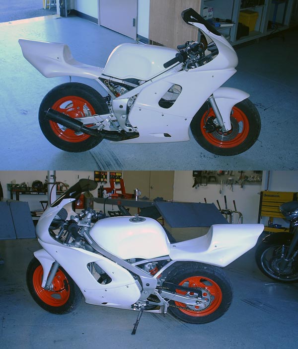 R6 upper & lower with dual headlights. R6 front fender. GSXR tail with tail light.